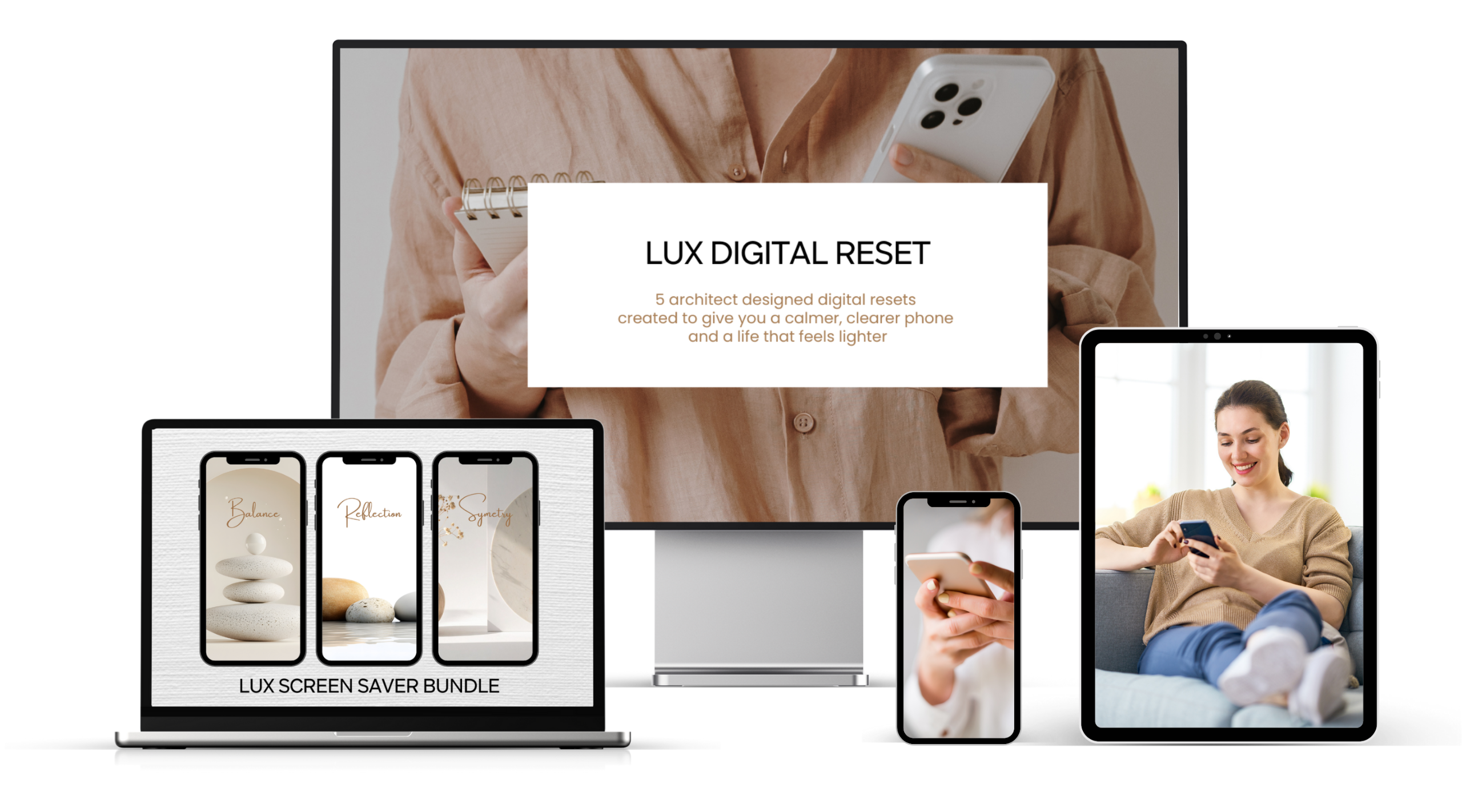 The LUX Digital Reset is a 5-step, architect-designed phone reset for high-performing women who are done letting digital chaos drain their time, focus, and mental energy.